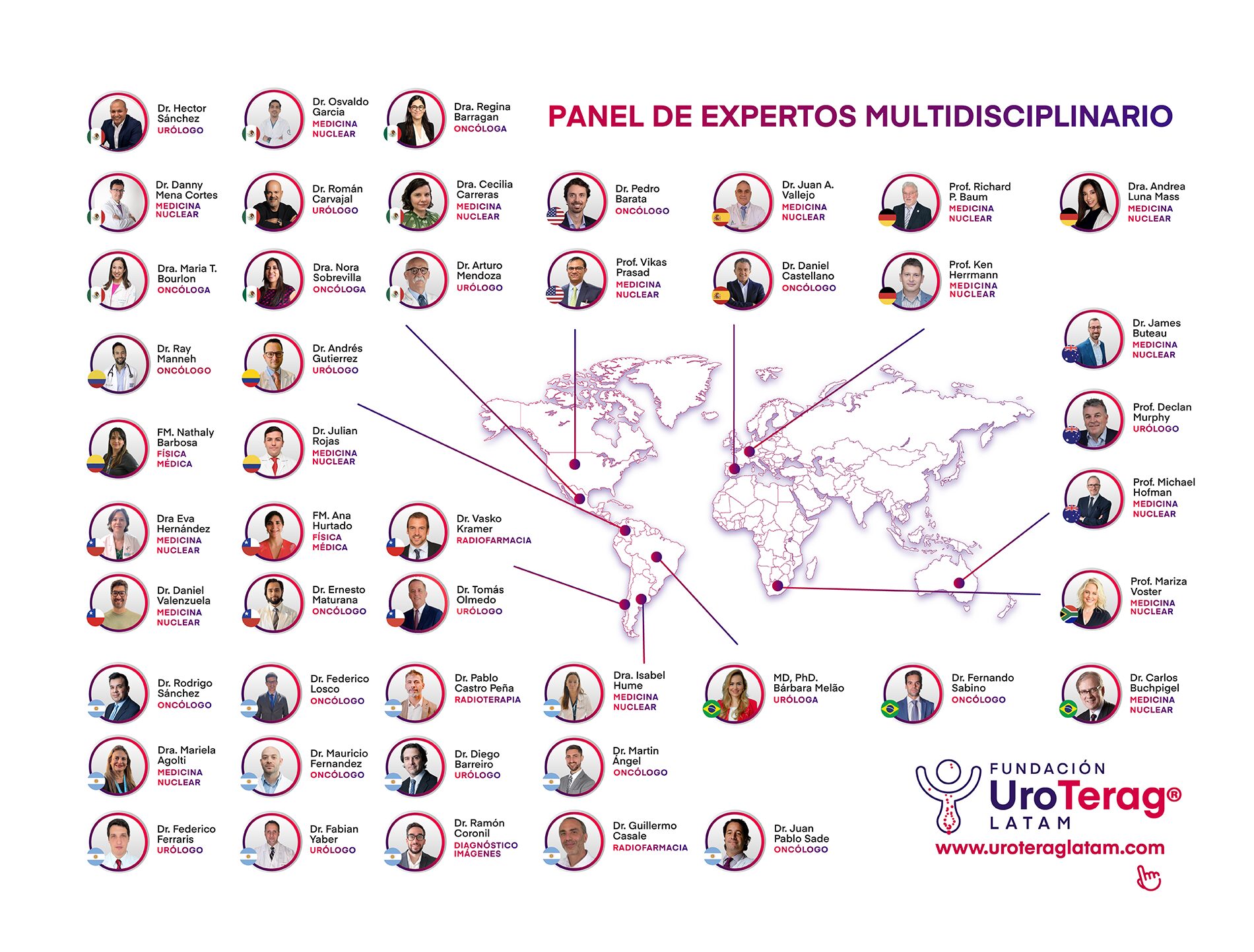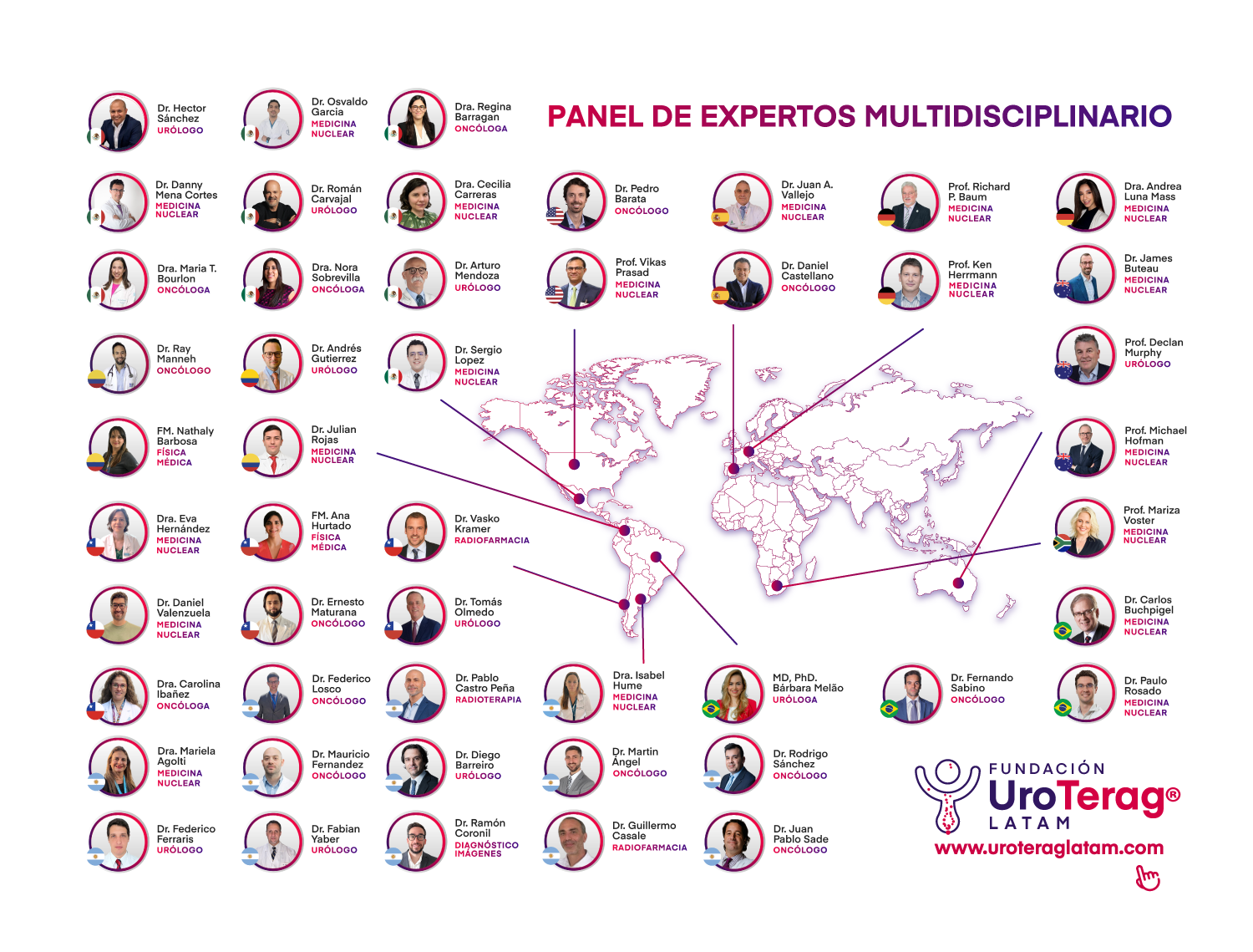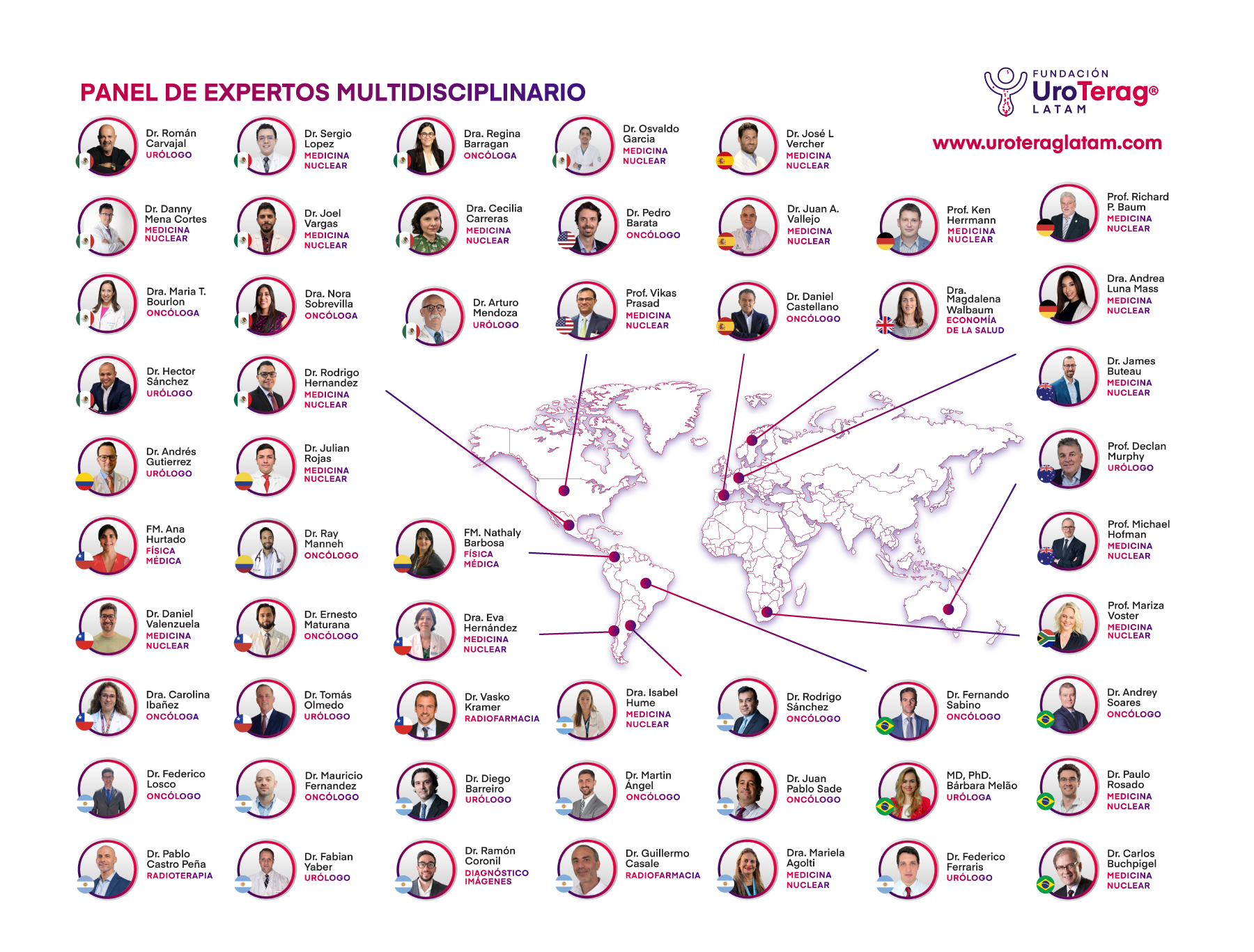 UroTeragLATAM también crea espacios presenciales para discutir sobre nueva evidencia en teragnosis GU a través de colaboraciones con otras actividades/asociaciones académicas de urología, oncología, medicina nuclear y física médica, organizando simposios dentro de congresos.